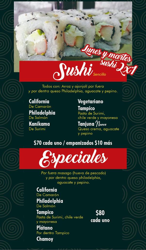 Horario: Lunes a viernes de 1:00 a 10:00 pm Sábados y domingos de 1:00 a 11:00 pm